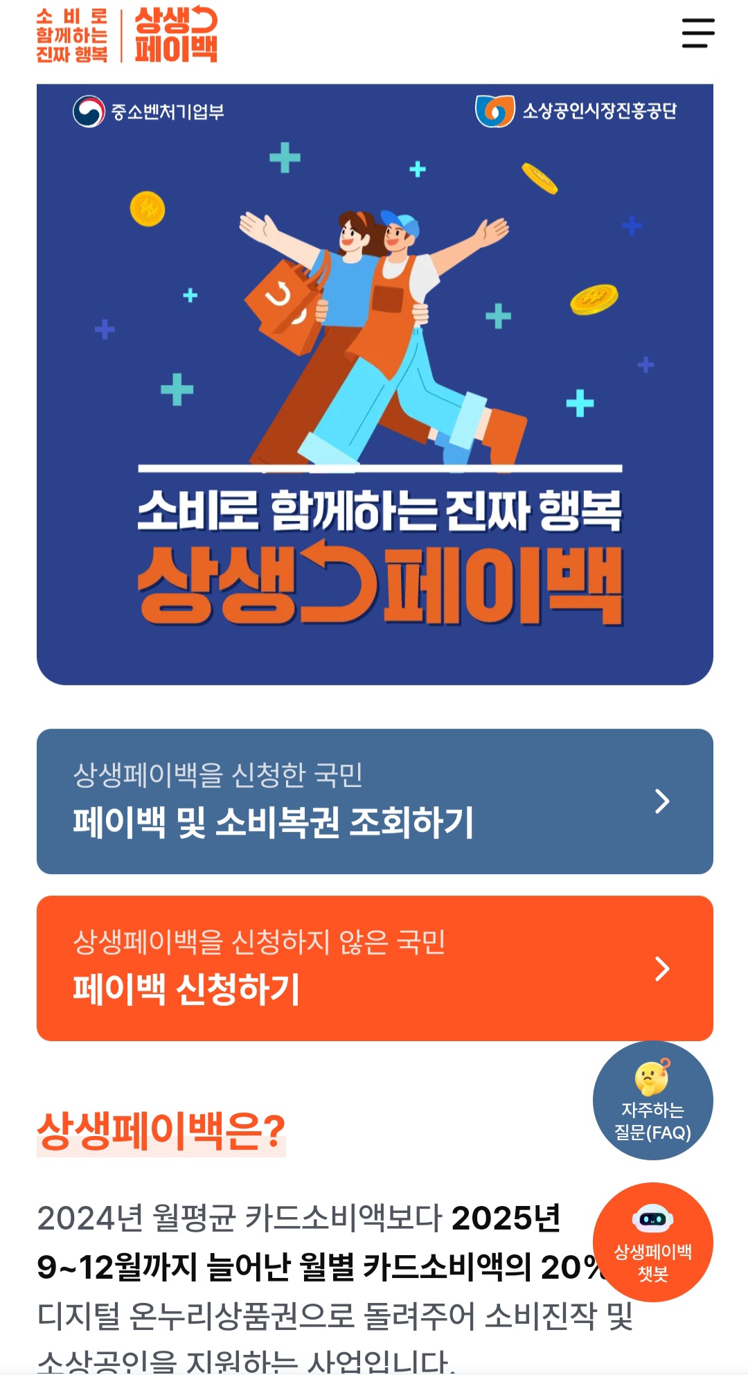 소비자는 캐시백 혜택을 받고소상공인은 매출이 늘어나는 구조라 상생’이라는 이름이 붙었습니다.